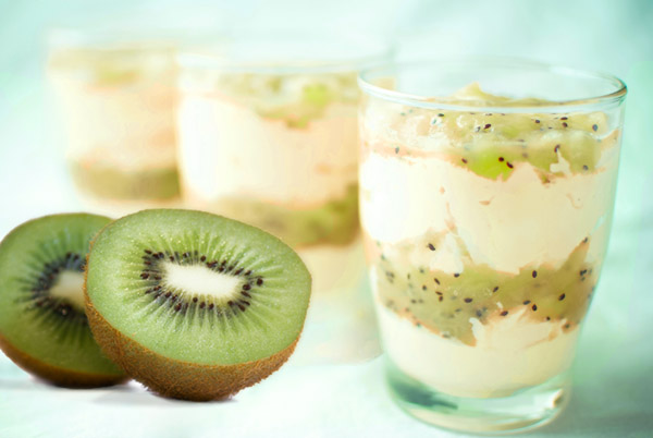 – versez encore un peu de préparation chocolatée au dessus et encore une couche de morceaux de kiwi et ainsi de suite …